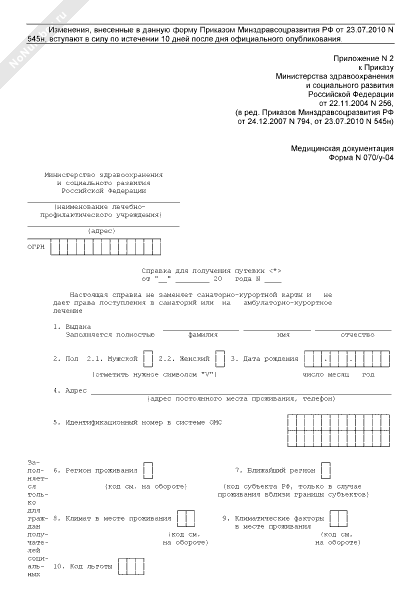 - 139Справка для получения путевки. Форма № 070/У-04