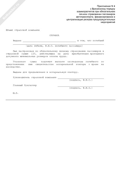 - 138Справка для получения свидетельства нотариальной конторы о праве на наследство застрахованного пассажира