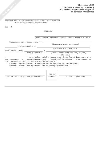 - 121Справка гражданину в том, что он не приобретал гражданства Российской Федерации и в соответствии с законодательством Российской Федерации о гражданстве гражданином Российской Федерации не является