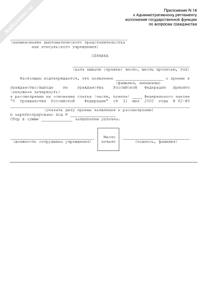 - 122Справка гражданину о подтверждении в том, что заявление о приеме в гражданство/выходе из гражданства Российской Федерации принято к рассмотрению