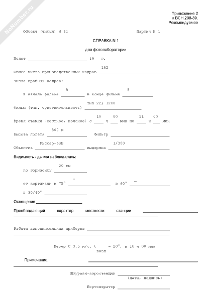- 152Справка для фотолаборатории (по результатам аэрофотосъемки при инженерно-геодезических изысканиях железных и автомобильных дорог)