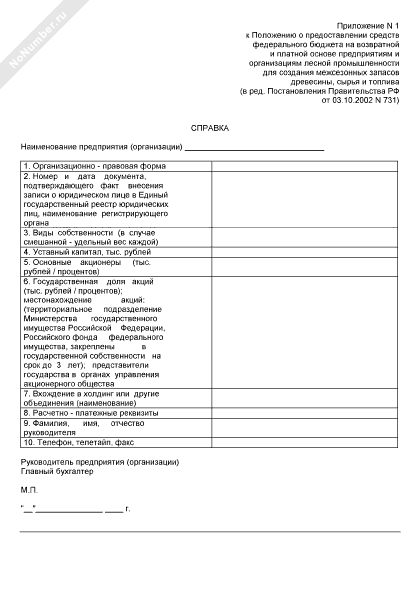 - 143Справка для предоставления бюджетных средств (бюджетных кредитов) на возвратной и платной основе организациям деревообрабатывающей, целлюлозно-бумажной и лесохимической отраслей лесной промышленности