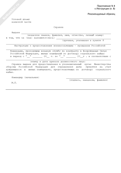 - 145Справка для предоставления в уполномоченный орган Министерства обороны Российской Федерации и определения даты принятия на учет нуждающихся в жилых помещениях, предоставляемых по договору социального найма