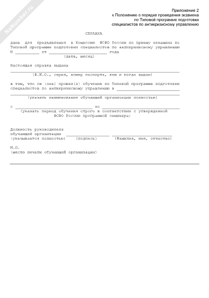 - 141Справка для предъявления по приему экзамена по Типовой программе подготовки специалистов по антикризисному управлению