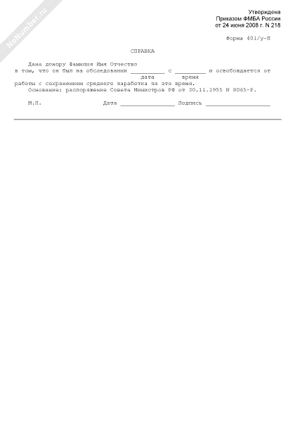 - 154Справка донору об обследовании. Форма № 401/у-П
