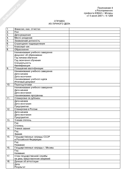 - 157Справка из личного дела кандидата на должность руководителя государственного учреждения города Москвы «Инженерная служба района»