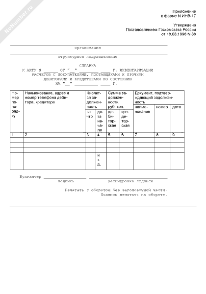 - 160Справка к акту инвентаризации расчетов с покупателями, поставщиками и прочими дебиторами и кредиторами (приложение к форме № ИНВ-17)