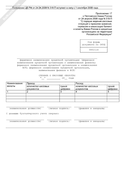 - 167Справка кассового работника внутреннего структурного подразделения кредитной организации о кассовых оборотах