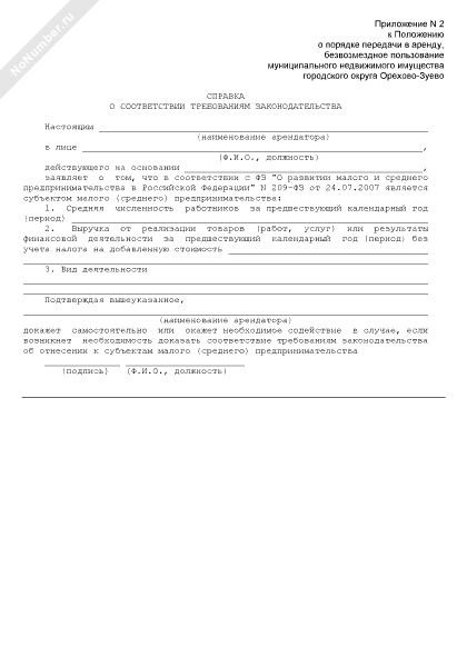 - 168Справка комитета по управлению имуществом администрации городского округа Орехово-Зуево о соответствии требованиям законодательства, заполняется претендентом на заключение договора аренды недвижимого имущества, находящегося в муниципальной собственности городского округа Орехово-Зуево Московской области
