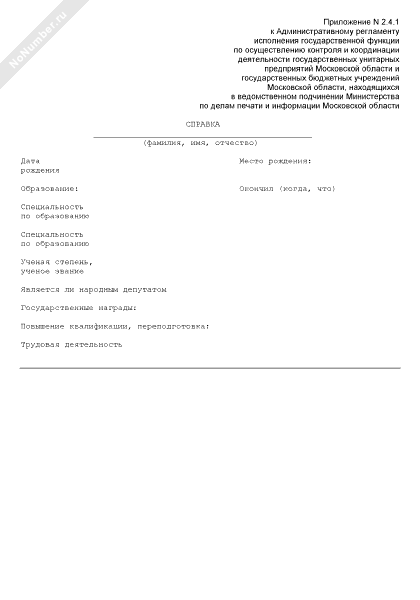 - 180Справка на кандидата на должность руководителя учреждения, находящегося в ведомственном подчинении Министерства по делам печати и информации Московской области