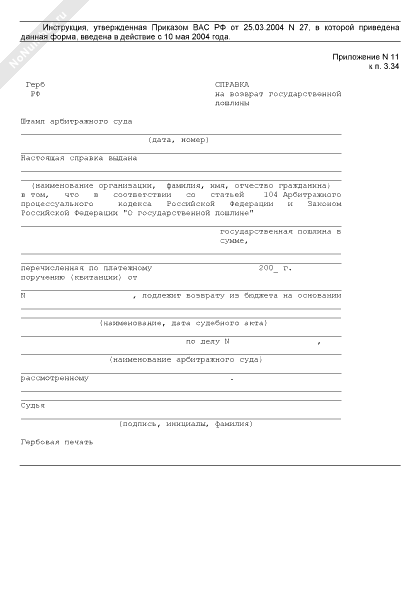 - 174Справка на возврат государственной пошлины в арбитражном суде Российской Федерации (первой, апелляционной и кассационной инстанциях)