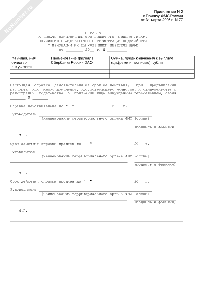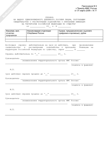 - 176Справка на выдачу единовременного денежного пособия лицам, получившим свидетельство о рассмотрении ходатайства о признании беженцем на территории Российской Федерации по существу