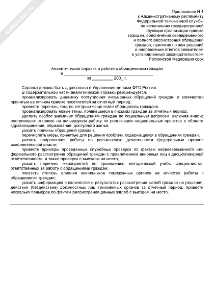 Аналитическая справка о работе с обращениями граждан в Федеральной таможенной службе (рекомендуемый образец заполнения)