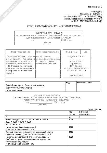 Аналитическая справка об ожидаемом поступлении в федеральный бюджет доходов, администрируемых налоговыми органами (форма № 1-ОНС)