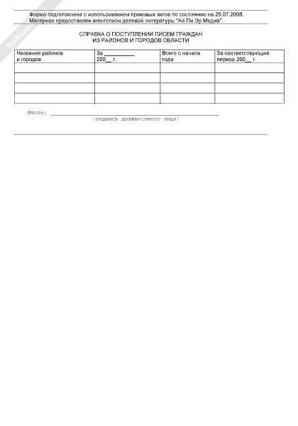 Справка о поступлении писем граждан из районов и городов области