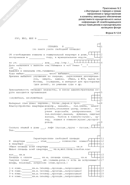 Справка (по книге учета свободной площади). Форма № 12-К