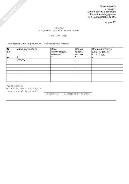 Справка о среднем пробеге автомобилей бюджетного учреждения (форма № 27)