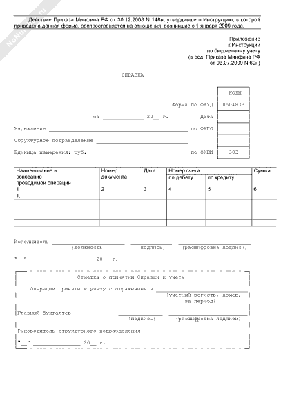 - Номер типовой формы 504833