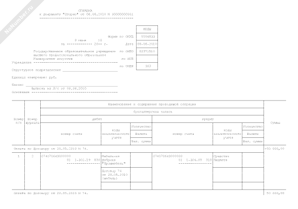Бухгалтерская справка бюджетного учреждения (рекомендуемый образец заполнения)