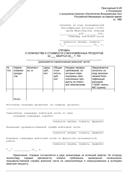 Справка о количестве и стоимости сэкономленных продуктов