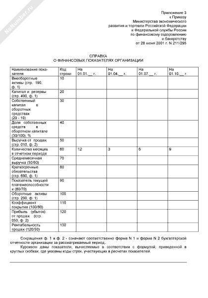 Справка о финансовых показателях организации
