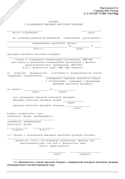 Справка о проведенной выездной налоговой проверке в организации