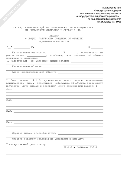 Справка о лицах, получивших сведения об объекте недвижимого имущества