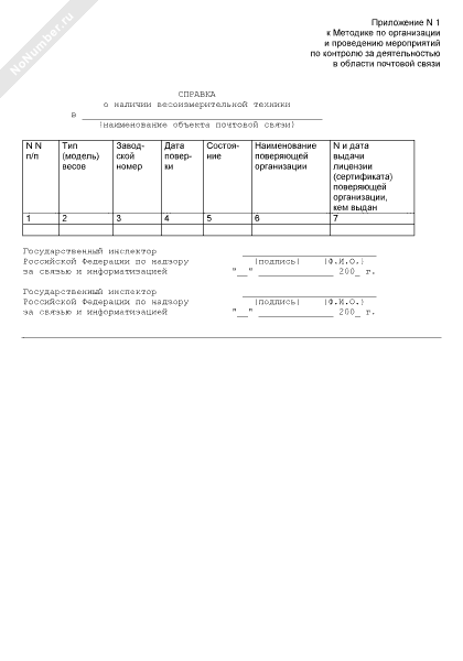 Справка о наличии весоизмерительной техники в объекте почтовой связи