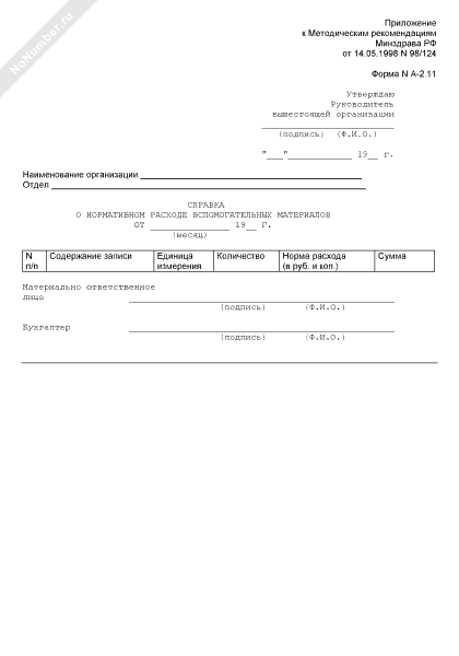Справка о нормативном расходе вспомогательных материалов. Форма № А-2.11