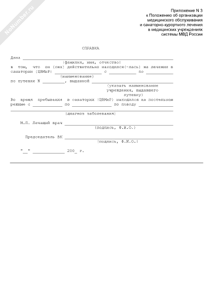 Справка о прохождении санаторно-курортного лечения