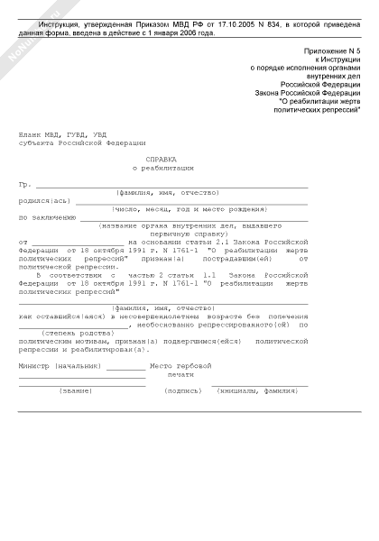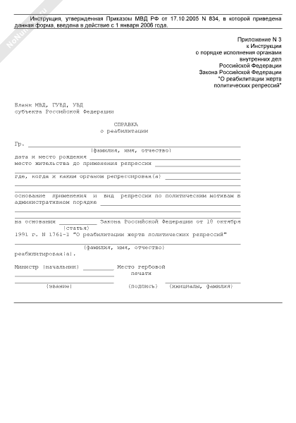 Справка о реабилитации жертв политических репрессий