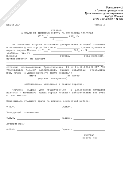 Справка о праве на жилищные льготы по состоянию здоровья (форма № 2)