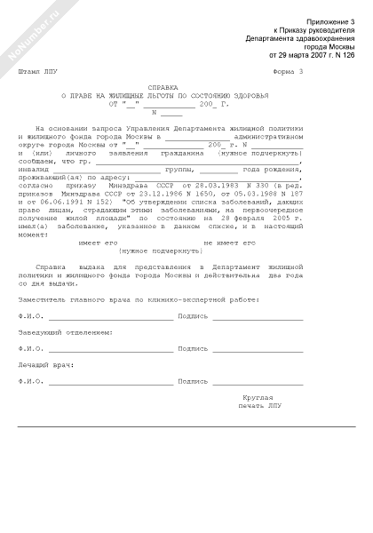 Справка о праве на жилищные льготы по состоянию здоровья (форма № 3)
