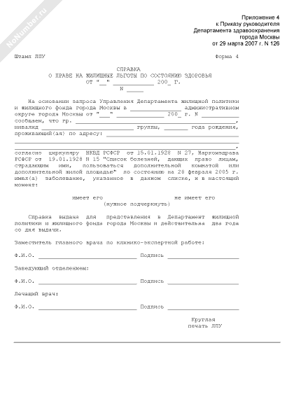 Справка о праве на жилищные льготы по состоянию здоровья (форма № 4)