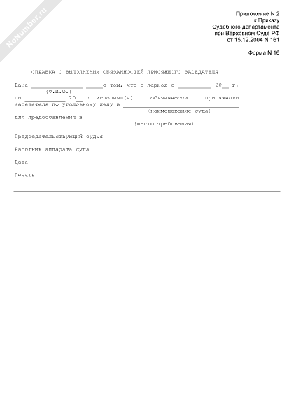Справка о выполнении обязанностей присяжного заседателя (форма № 16)