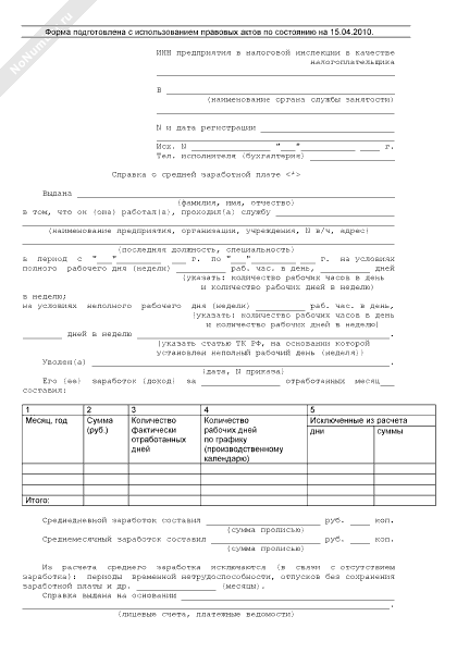 Справка о заработной плате (рекомендуемый образец заполнения)