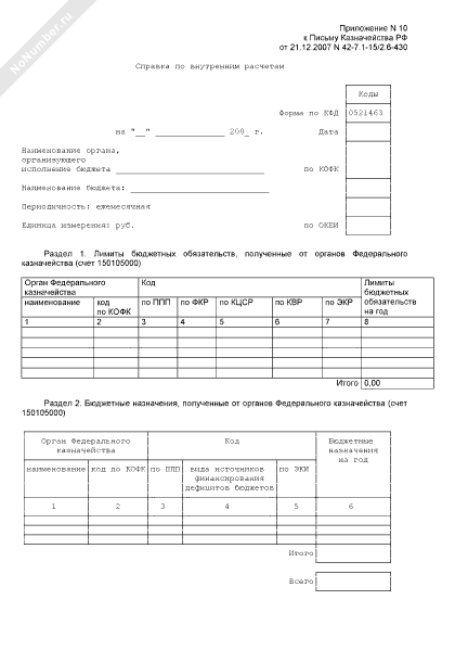 Справка по внутренним расчетам
