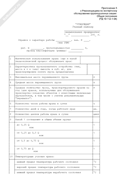 Справка о характере работы грузоподъемной машины