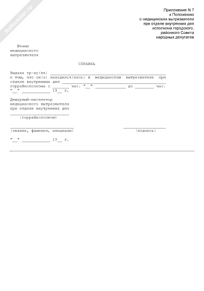 Справка о пребывании в медицинском вытрезвителе