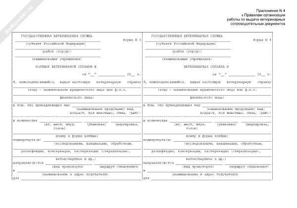 Ветеринарная справка при перевозке грузов в пределах района (города) (форма № 4)
