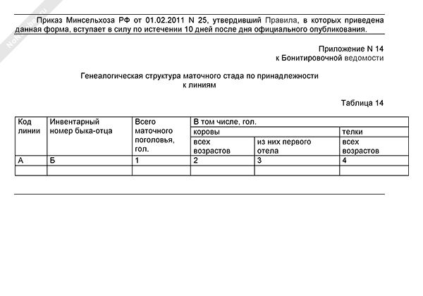 - Источник– Приказ Минсельхоза РФ от 01.02.2011 № 25