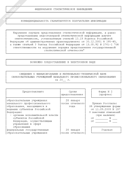 - 2038Сведения о финансировании и материально-технической базе образовательных учреждений начального профессионального образования. Форма № 2 (профтех) (годовая)