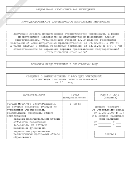 - 2039Сведения о финансировании и расходах учреждения, реализующего программы общего образования. Форма № ОШ-2 (годовая)