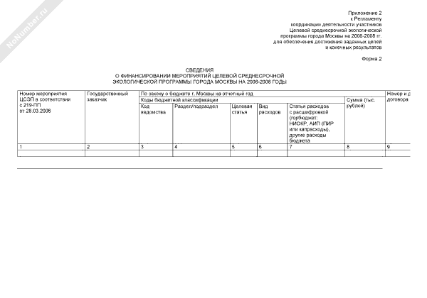 - 2021Сведения о финансировании мероприятий Целевой среднесрочной экологической программы города Москвы на 2006-2008 годы (форма № 2)
