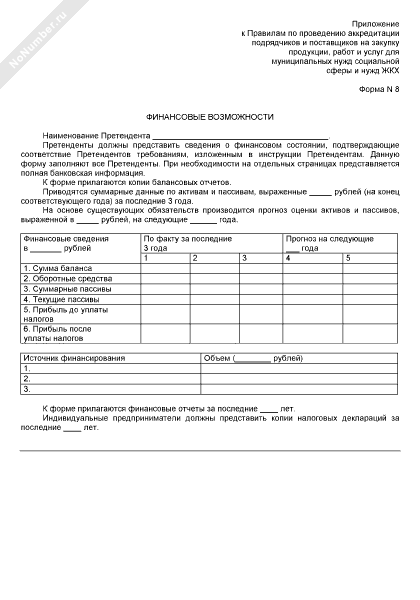 - 2022Сведения о финансовом состоянии, подтверждающие соответствие претендентов требованиям, для участия в проведении аккредитации подрядчиков и поставщиков на закупку продукции, работ и услуг для муниципальных нужд социальной сферы и нужд ЖКХ муниципального образования «Домодедовский район» Московской области (форма № 8)