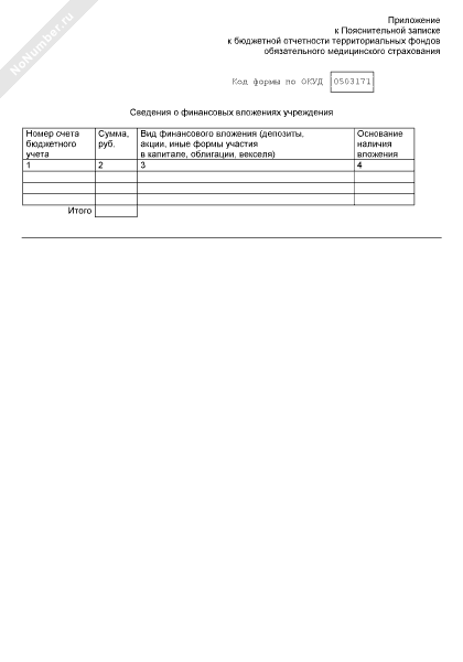 - 2028Сведения о финансовых вложениях учреждения (приложение к пояснительной записке к бюджетной отчетности территориального фонда обязательного медицинского страхования)