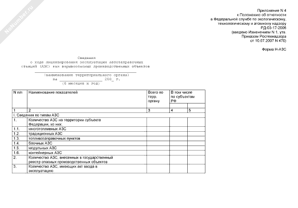 - 2062Сведения о ходе лицензирования эксплуатации автозаправочных станций (АЗС) как взрывоопасных производственных объектов. Форма № Н-АЗС
