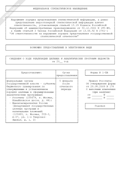 - 2073Сведения о ходе реализации целевых и аналитических программ ведомств. Форма № 1-ПВ (годовая)