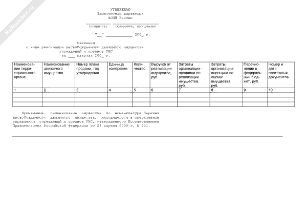 - 2066Сведения о ходе реализации высвобождаемого движимого имущества учреждений и органов уголовно-исполнительной системы