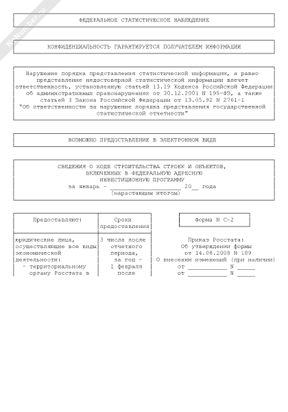 - 2071Сведения о ходе строительства строек и объектов, включенных в федеральную адресную инвестиционную программу. Форма № С-2